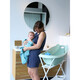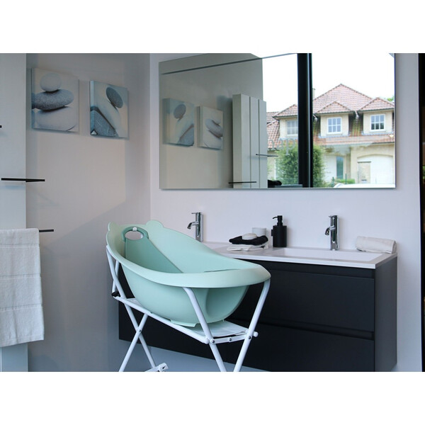 Подходяща за новородени благодарение на подложката, която се захваща с вендузи и е съобразена с размера на новороденото бебе. Когато бебето вече е по - голямо, махате подложката и започвате да използвате ваната в пълния и размер.