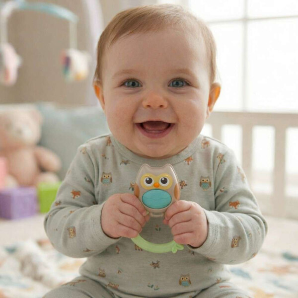 Подходяща за бебета 3+ месеца – идеална за сензорно развитие и първи игри!