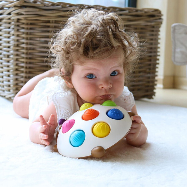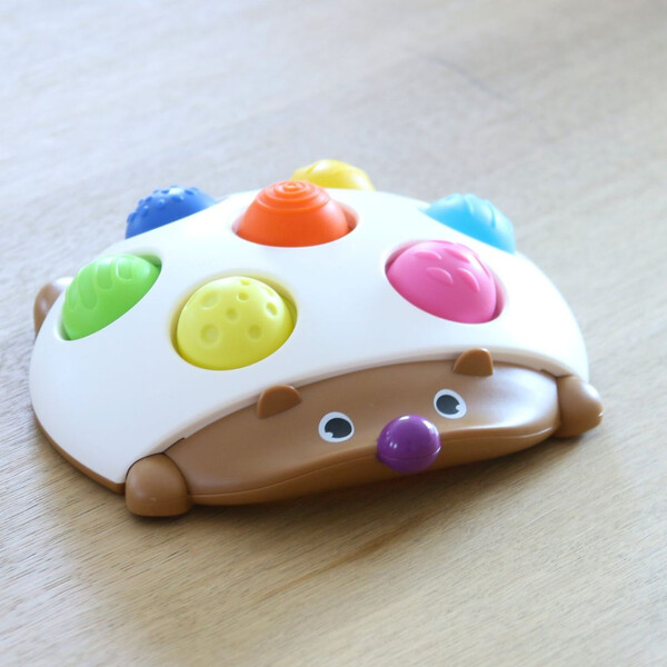 Цветните "бодли" са всъщност меки силиконови топчета с различни текстури. Когато бъдат натиснати издават пукащ звук.