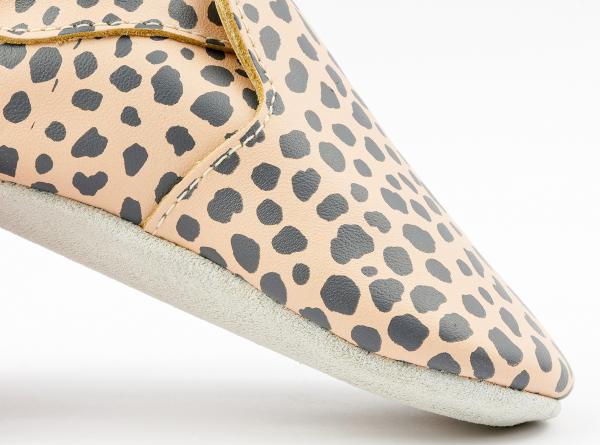 Направени са от мека, дишаща, естествена кожа. Тя приема формата на крачето на детето, докато то свободно расте.