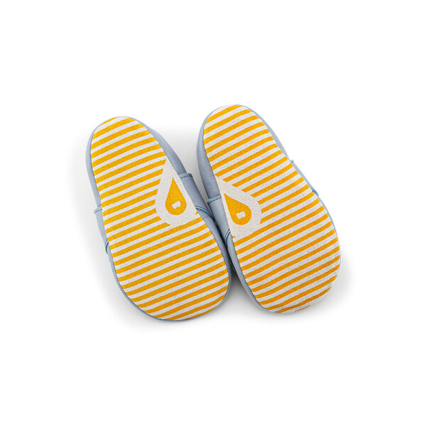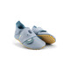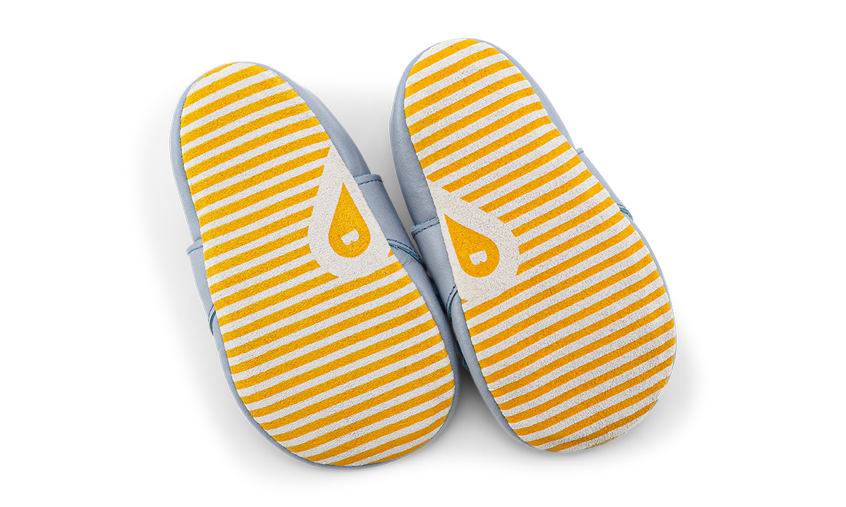 Меката, нехлъзгаща се подметка от велур помага на детето да усеща повърхността, подобрявайки увереността, стойката и баланса му. Двойният шев гарантира стабилност и устойчивост, осигурявайки дълготрайна употреба.