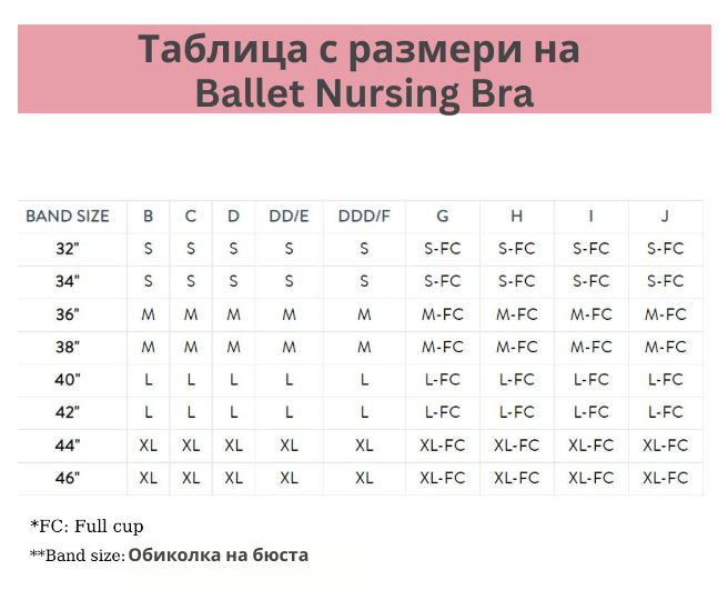 Ако знаете размера си преди бременността и не сте качили повече от 12-14 кг по време на бременността, същият размер сутиен ще ви е удобен по време на бременност и кърмене. В таблицата по-долу ще видите кой размер сутиен Bravado е подходящ за вас въз основа на чашката (A, B, C, D) и обиколката на бюста.
