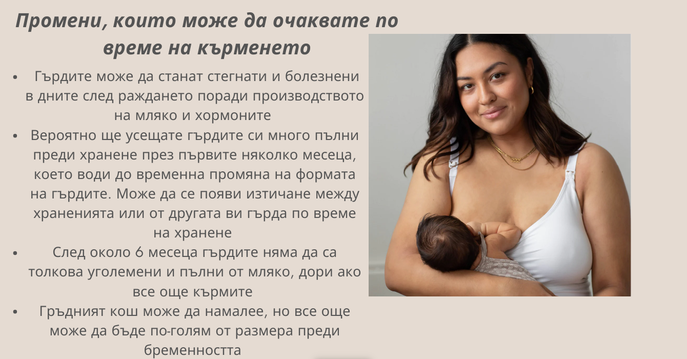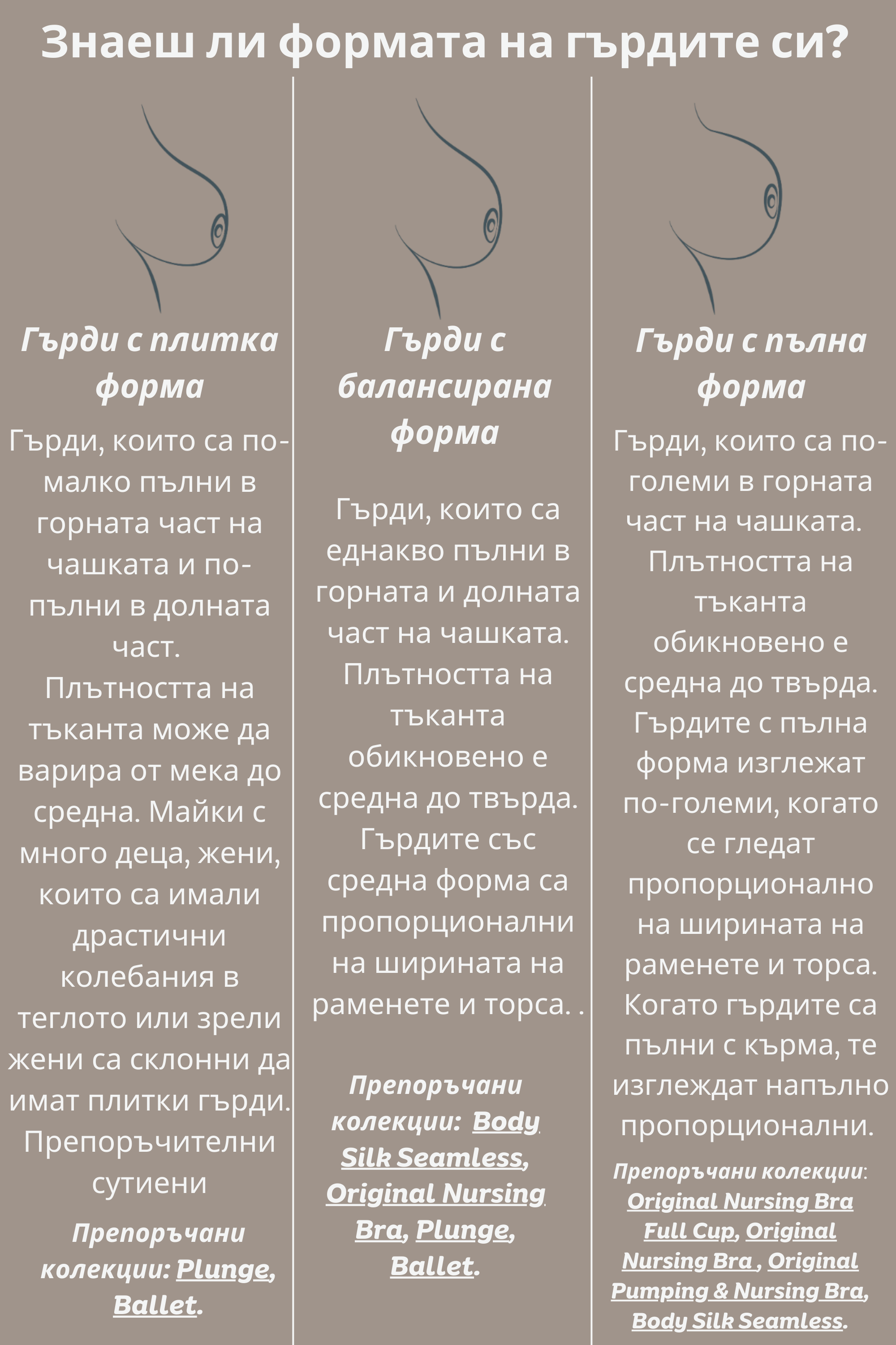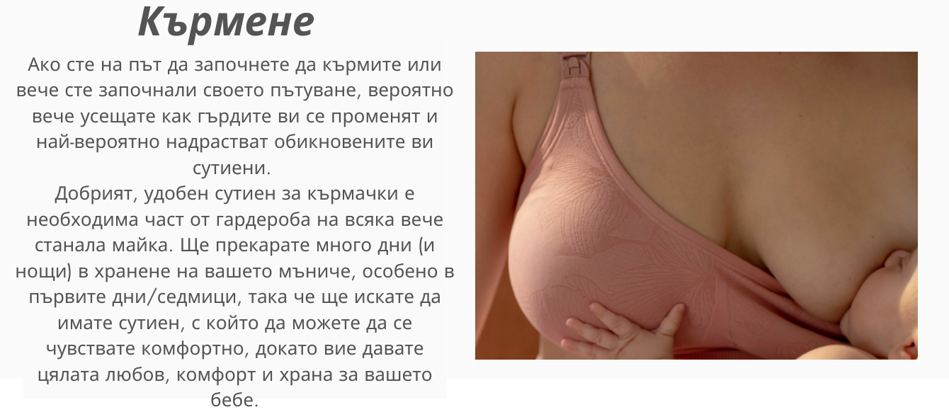 По време на бременност и кърмене тялото ви ще се промени. Затова е много важно да носите правилния размер сутиен, който се адаптира към всяка промяна и предлага комфорт и подкрепа през целия ден!