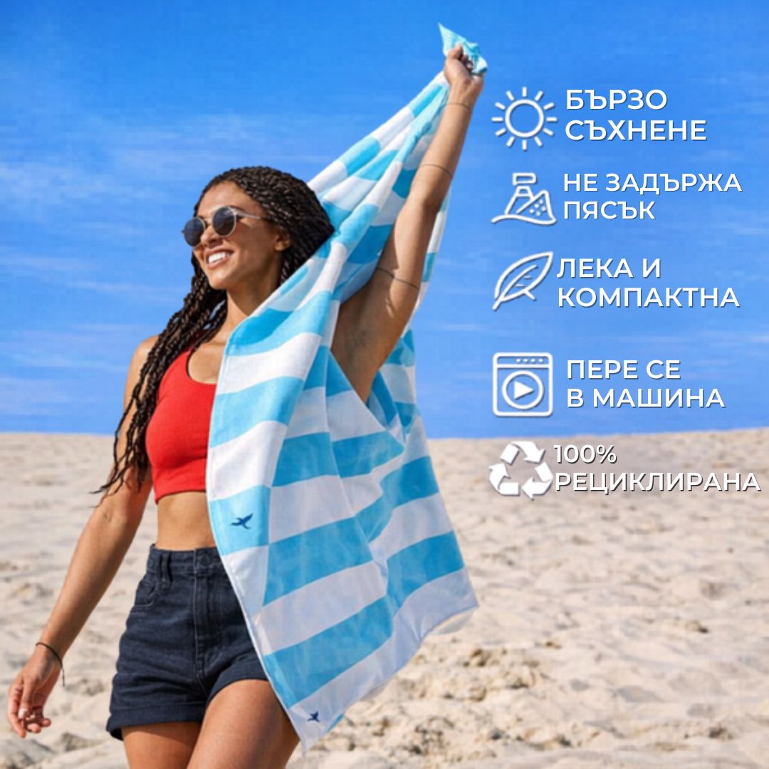 Запознайте се с кърпите Dock & Bay — изработени от мек микрофибър, който съхне до 3 пъти по-бързо, не задържа пясък и винаги остава свеж ✨