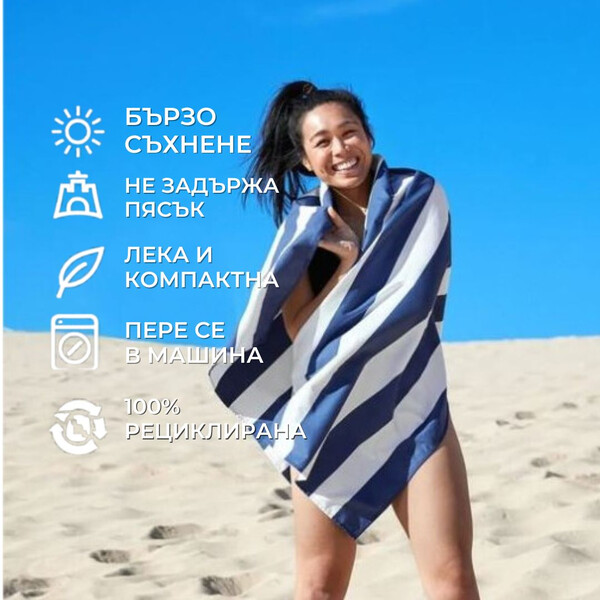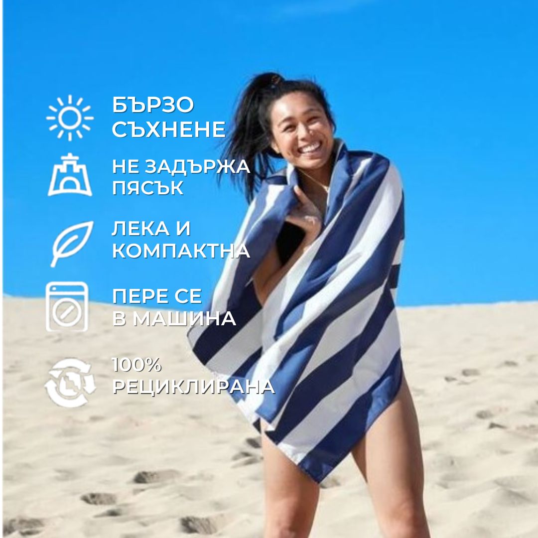 Запознайте се с кърпите Dock & Bay — изработени от мек микрофибър, който съхне до 3 пъти по-бързо, не задържа пясък и винаги остава свеж ✨