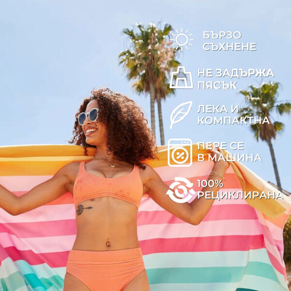 Запознайте се с кърпите Dock & Bay — изработени от мек микрофибър, който съхне до 3 пъти по-бързо, не задържа пясък и винаги остава свеж ✨