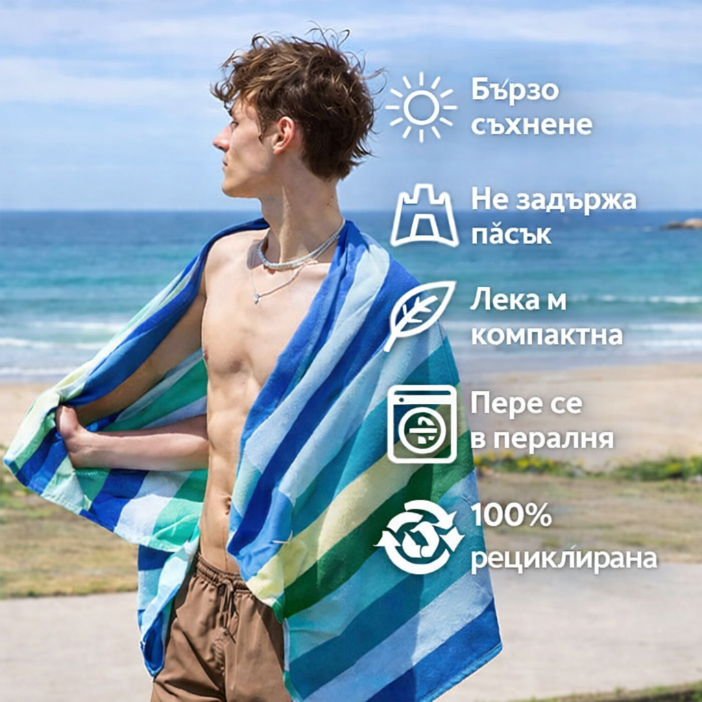 Запознайте се с кърпите Dock & Bay — изработени от мек микрофибър, който съхне до 3 пъти по-бързо, не задържа пясък и винаги остава свеж ✨