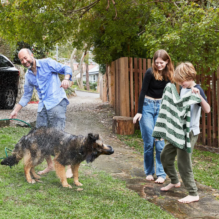 Кърпите Dock & Bay се отличават с уникален дизайн, отлично качество и Quickdry технология, която ги прави три пъти по-бързо съхнещи от обикновените кърпи. Кърпата за вашето куче разполага с джобове за лесно подсушаване на козината, без да се намокрите - и естествено е също толкова стилна!