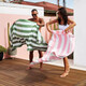 Бъдете най-неразделното дуо на плажа! Независимо дали става въпрос за следобедни потапяния в морето или ваканционно пътешествие, този комплект от кърпи за вас и за вашето куче е не само практичен и екологичен, но и изключително ярък и цветен!