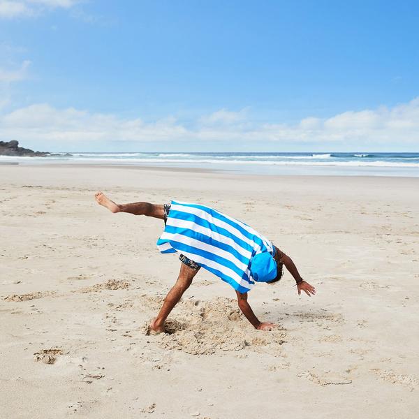 Пончо-кърпите за възрастни и деца на Dock & Bay ' Bondi Blue' са изработени от уникалната Quickdry Microfiber материя, която изсъхва мигновено. Те са най-добрата комбинация за баща и дъщеря на морския бряг! Удобство, стил и практичност – всичко в едно.