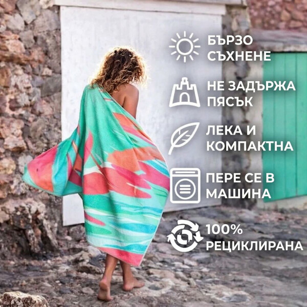 Запознайте се с кърпите Dock & Bay — изработени от мек микрофибър, който съхне до 3 пъти по-бързо, не задържа пясък и винаги остава свеж ✨