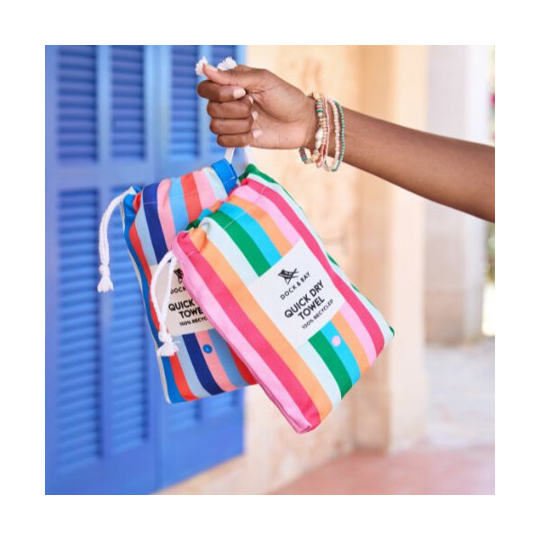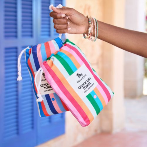 Запознайте се с кърпите Dock & Bay — изработени от мек микрофибър, който съхне до 3 пъти по-бързо, не задържа пясък и винаги остава свеж ✨