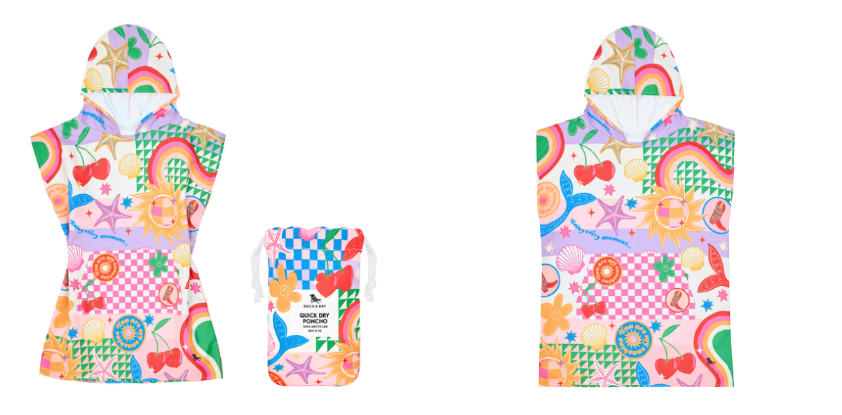 Пончотата на Dock & Bay са перфектният избор за всяка майка, която търси комфорт и практичност за своето дете в басейна или на плажа. Изработени от висококачествен микрофибър, те абсорбират водата мигновено, съхнат бързо и осигуряват мекота, идеална за чувствителната детска кожа.