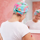• Поставя се на главата много лесно,  без да се изплъзва или да пада,  докато се боядисвате, обличате или вземате релаксиращ душ, без да искате да мокрите косата си.