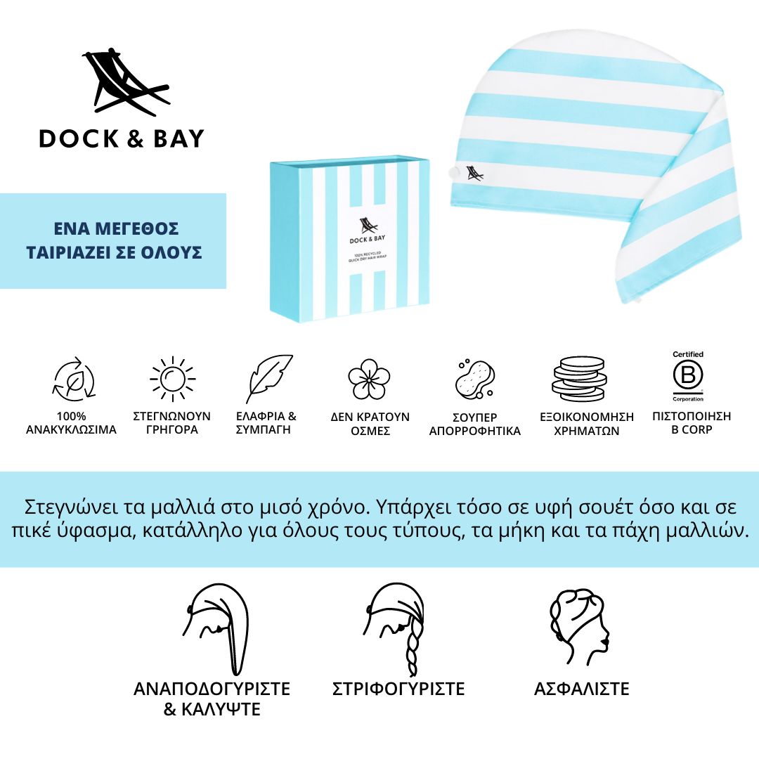Знаейки, че косата ни се нуждае от същата грижа като кожата ни, но и познавайки... ежедневието, искаме да ви представим Dock & Bay кърпи - тюрбани, които се превърнаха в любим продукт и неразделна част от всяка жена!