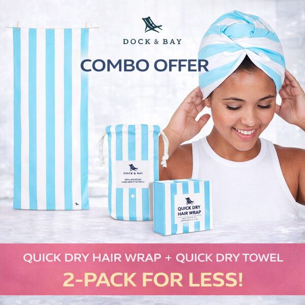 Намерете идеалния съюзник за ежедневната си рутинна грижа с предложението, което не е за пропускане! Тюрбанът и кърпа Dock &Bay, изработени от 100% рециклирани материали, са перфектното дуо, което ще промени начина, по който се грижите за себе си!