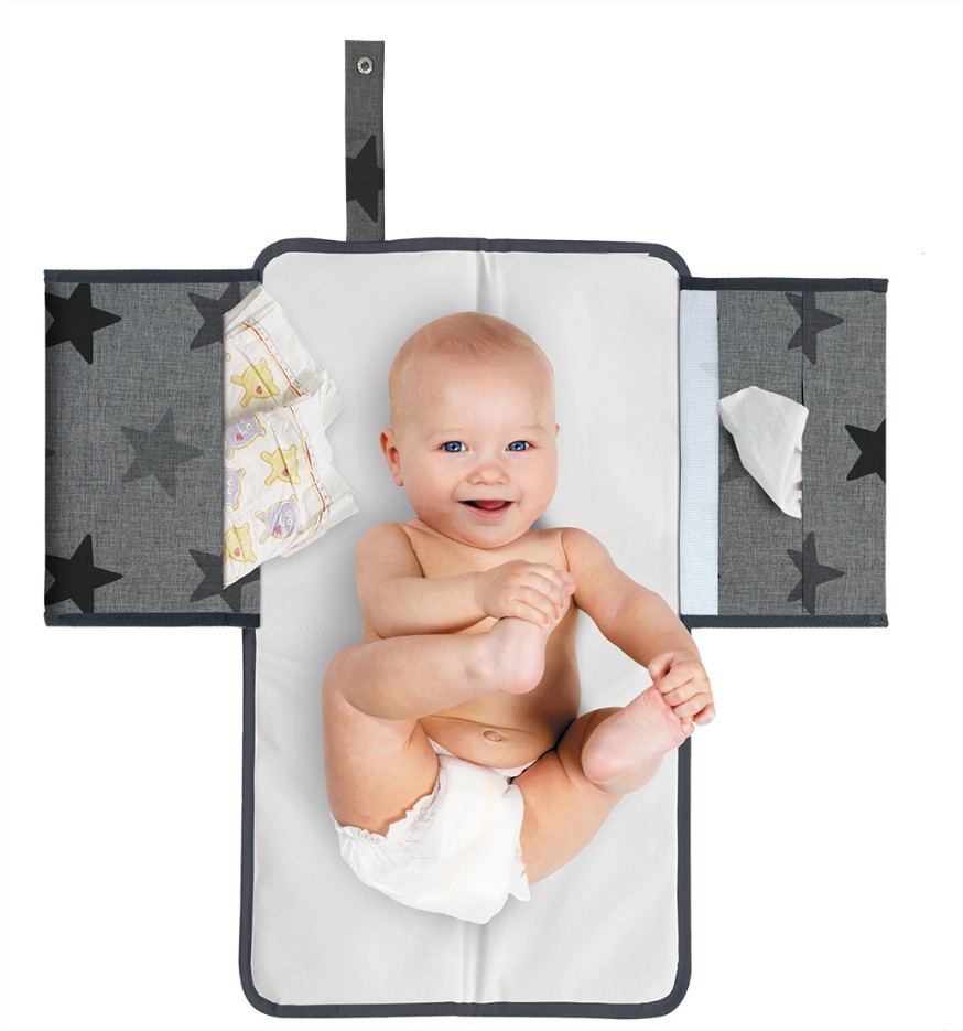 Подложката за повиване 3 в 1 Dooky Original е вашият идеален спътник при пътуване. Позволява ви да сложите бебето си на удобна, мека и чиста повърхност, когато му сменяте пелените. В сгънато състояние пасва идеално в чантата ви за пелени. А закопчалката гарантира пълно затваряне. Практичният дизайн с 2 джоба осигурява лесен достъп до бебешки кърпички и пелени. Подложката за повиване се състои от: удобна подплатена подложка за повиване, интегриран джоб за пелени, който може да побере няколко пелени и интегриран диспенсер за бебешки кърпички за незабавен достъп до тях.