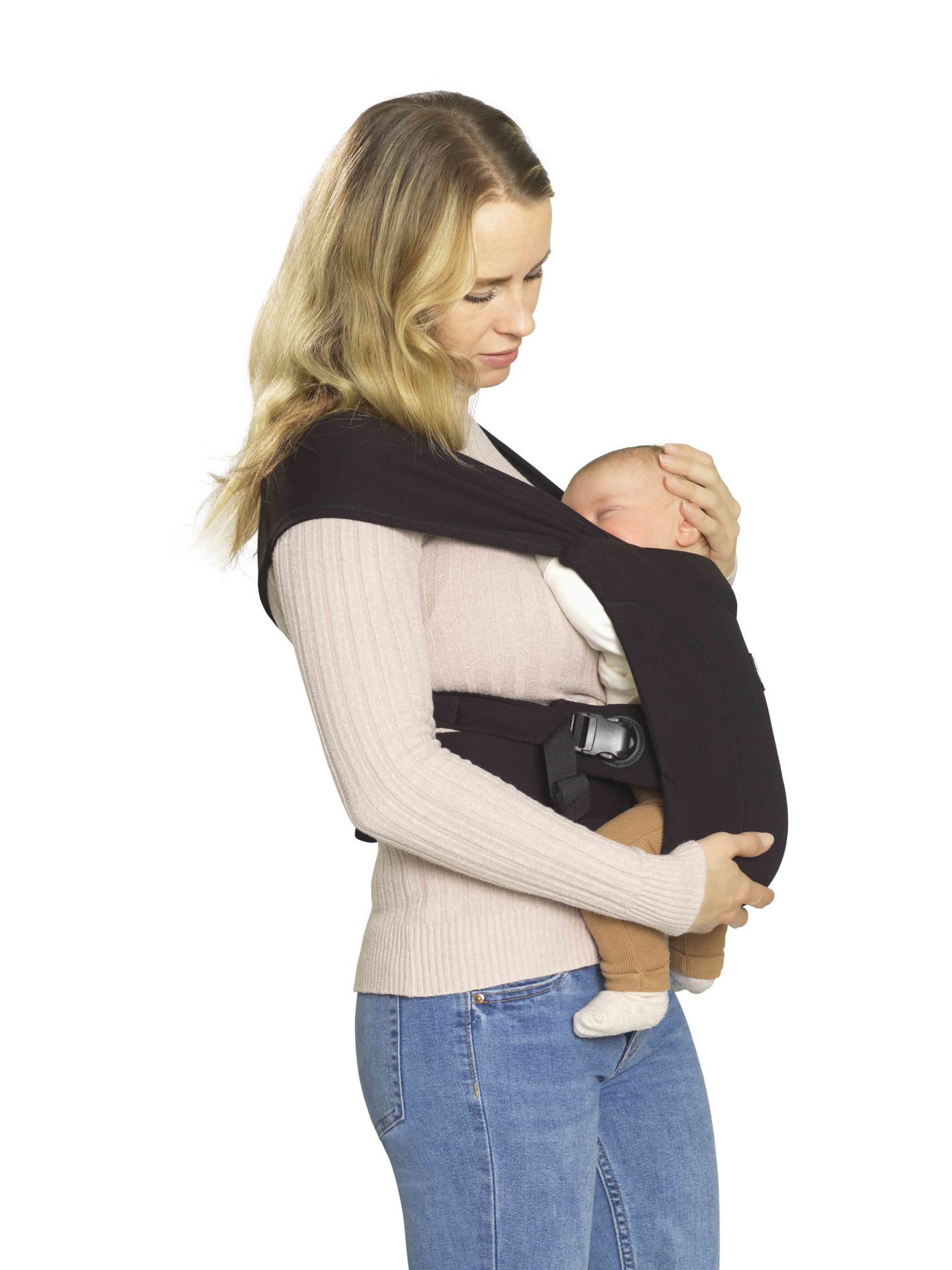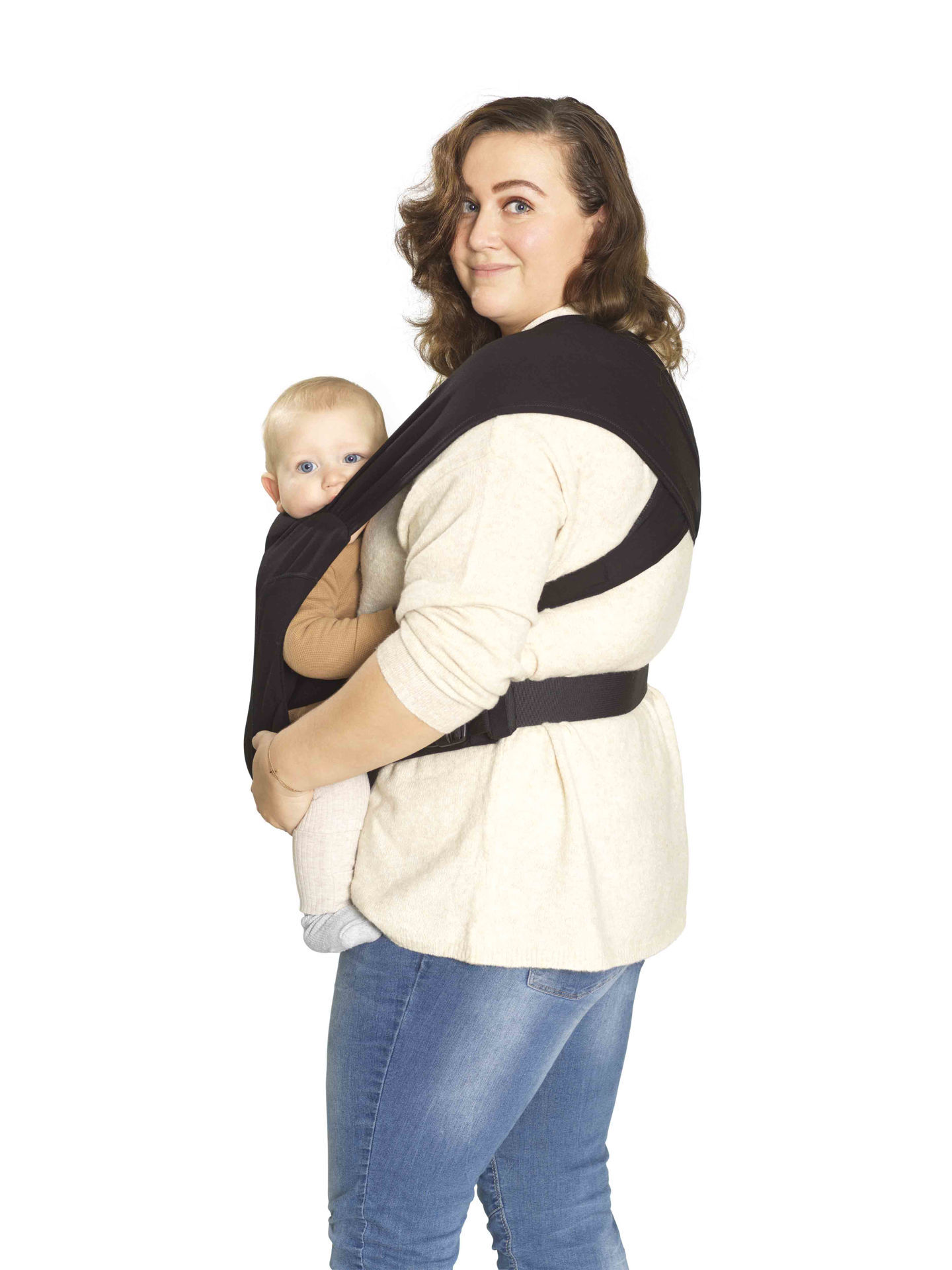 Слингът Be One позволява да се насладите на усещането за „прегръдка“ на текстилен слинг с практичността на моментално поставяне. Така получавате: