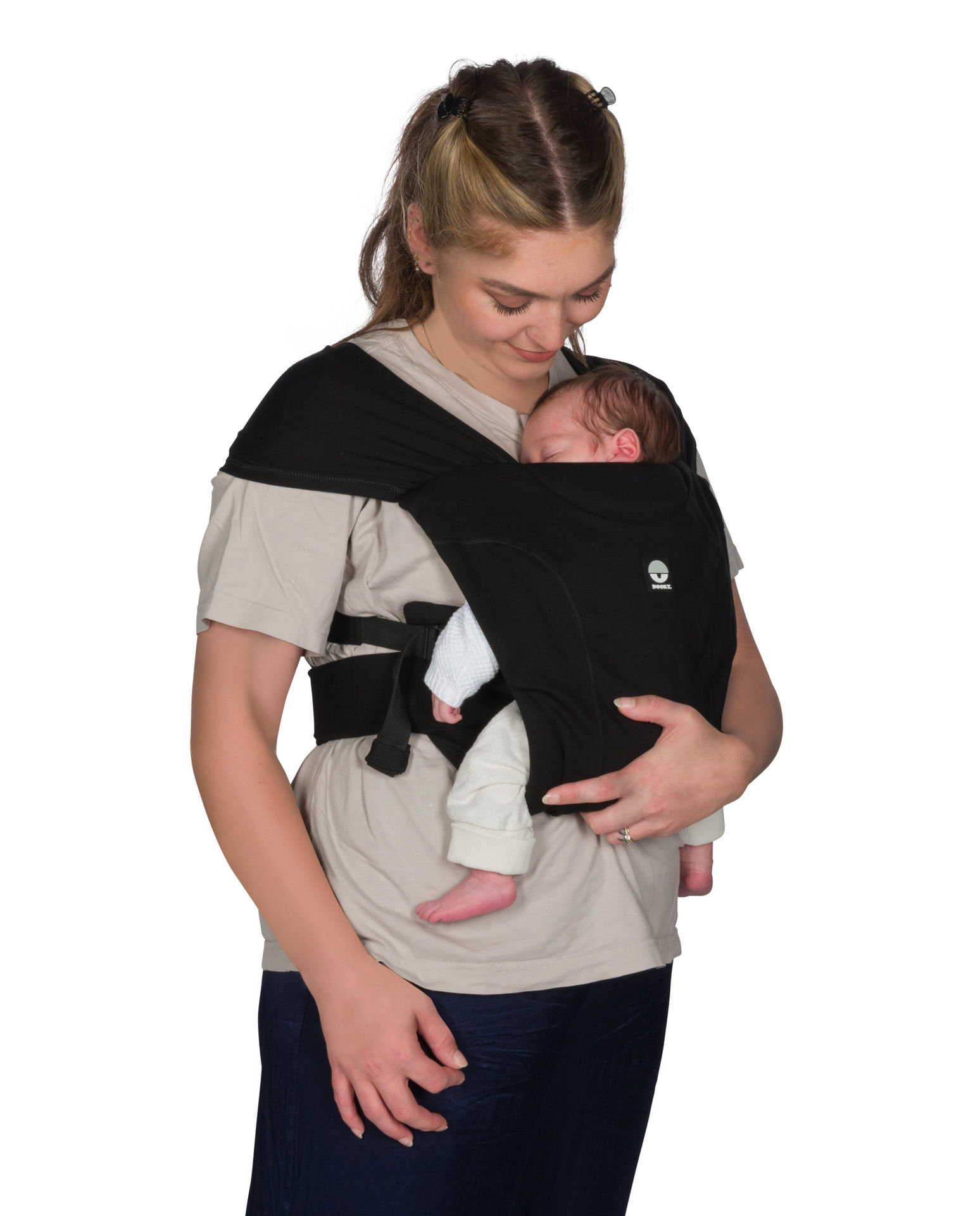 Открийте Dooky Be One, бебешки слинг, който съчетава комфорта на текстилен слинг с лекотата на използване на ергономичен клип-он слинг.