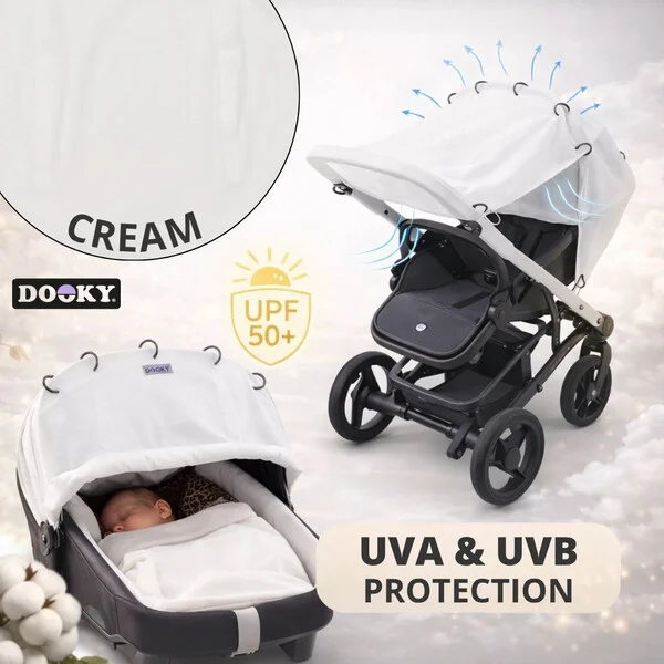 Универсалният сенник Dooky Universal Cover е тук, за да ви даде точно това, от което имате нужда: спокойствие, безопасност и комфорт за вашето дете, без да се притеснявате от слънчевите лъчи.