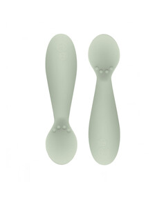 Обучителна лъжица Tiny Collection: Изработена от мек силикон, който предпазва, растящите зъби на бебето и му помага да се храни безопасно. Лъжицата е проктирана с лек наклон, който помага на детето лесно да се загребе от паничката си. А благодарение на тесния си размер, хапката идеално се побира в устата на бебето. Късата, дебела, неплъзгаща се дръжка, помага на бебето да държи лъжичката си лесно.