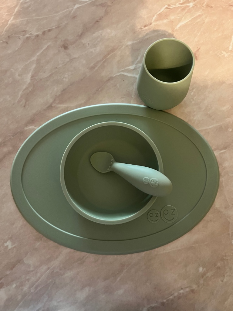 Сет за хранене, който включва приборите, от които се нуждаете за първите храни/напитки на бебето. Помага на бебето да постигне независимост при хранене и пиене