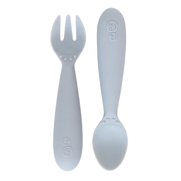 Ezpz: Тренировъчна лъжица и вилица, създадени от педиатър специалист по храненето и подходящи за ЗВБ, 12+ месеца - Pewter