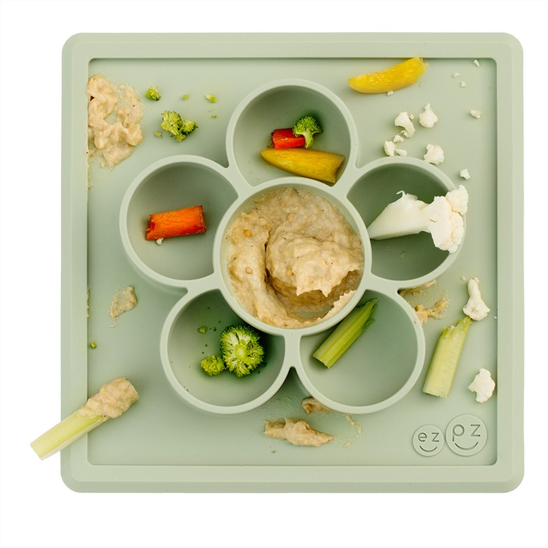 Силиконова чинийка за храна и игра с вградена вакуумна подложка във форма цвете Play Mat на Ezpz е "всичко в едно"! Тя залепва за масата чрез вакуум, позволявайки на децата да рисуват, да играят с мъниста, да събират всичките си материали на едно място. Чинийките са хипоалергични. По тях НЕ се задържат бактерии и мухъл и силикона не се износва. Изработени са БЕЗ вредните пластмаси BPA, BPS, PVC и фталати.