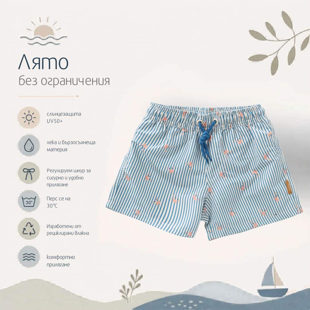 Бански тип бермуди, който съчетава безопасност, комфорт и отговорност – за безгрижни летни моменти, изпълнени с игра ☀️