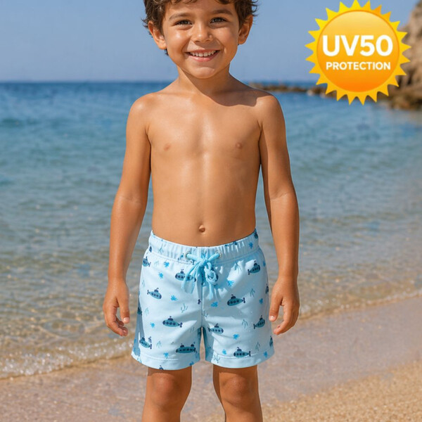Детски бански UV50 защита, произведени от рециклиран найлон.