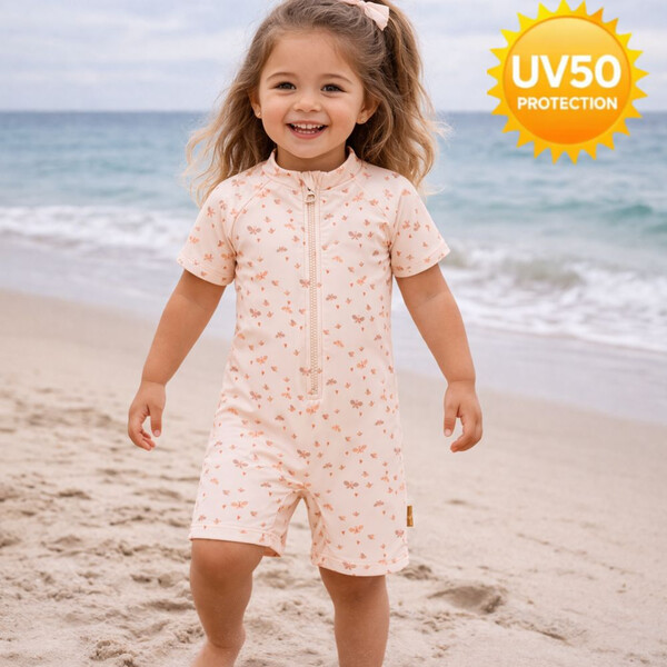 UV 50+ защита се грижи за чувствителната детска кожа, за да може детето да играе спокойно под слънцето. Материята е мека, лека и приляга удобно към тялото, без да ограничава движенията.