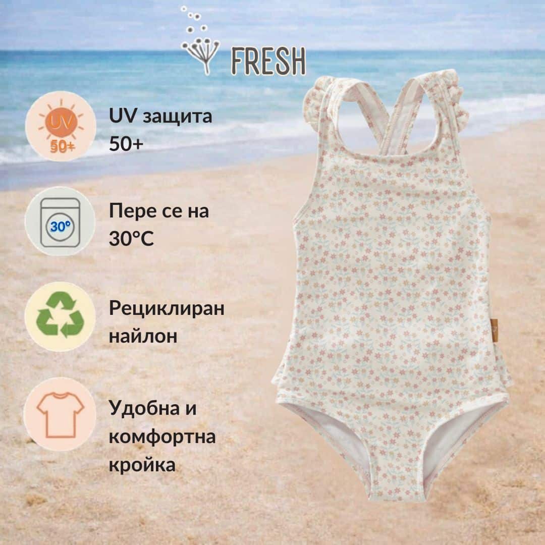 С банския костюм на една част на Fresk вашата малка русалка ще изпъква във всяка визия, а вие ще се чувствате спокойни за нейната защита под слънцето.