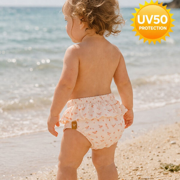 Памперс банският с UPF 50+ защита, абсорбираща вътрешност и специален дизайн против протичане осигурява спокойствие, комфорт и защита за бебето по време на всяко водно приключение.