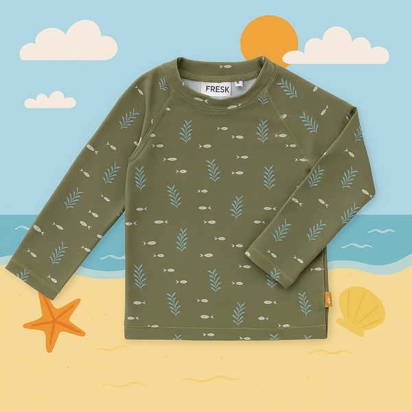С тази красива и стилна блуза с дълги ръкави от Fresk, раменете и ръцете на децата ще бъдат мамсимално защитени от вредните слънчеви лъчи! Със слънцезащитен фактор UV50, тя пази чувствителната бебешка кожа от слънцето, а дългите ръкави и изправената яка осигуряват допълнителна защита за спокойни слънчеви игри.