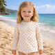 - Състав на материала: Банските на Fresk са изработени основно от рециклиран найлон – издръжлив и мек материал. Тази устойчива материя се използва за създаване на екологични бански за деца и това ги прави еко алтернатива на стандартните бански костюми.