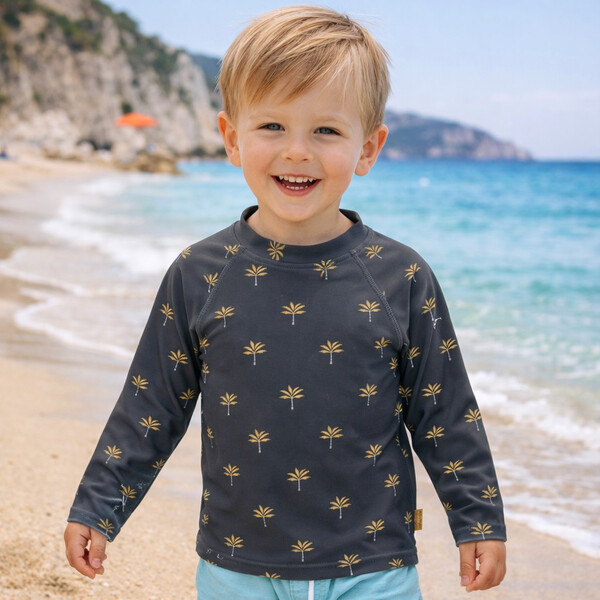 С тази красива и стилна блуза с дълги ръкави от Fresk, раменете и ръцете на децата ще бъдат мамсимално защитени от вредните слънчеви лъчи! Със слънцезащитен фактор UV50, тя пази чувствителната бебешка кожа от слънцето, а дългите ръкави и изправената яка осигуряват допълнителна защита за спокойни слънчеви игри.