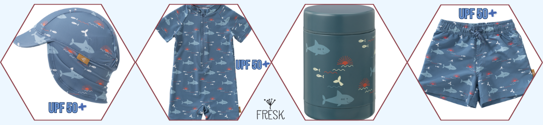 Mix & Match: Съчетайте памперс бански Shark, с други продукти от същия дизайн за цялостна Fresk визия ТУК