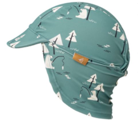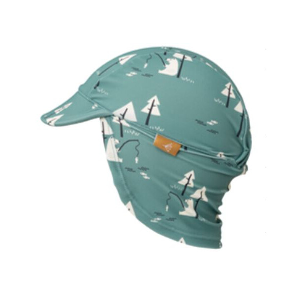 Шапката на Fresk е тип „легионер“, с UV50 защита и предпазва главичката, ушичките и врата на детето.