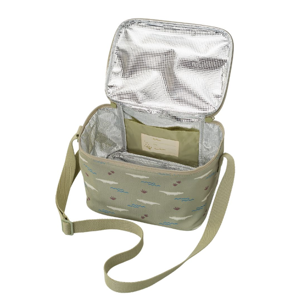 Разполага с голямо пространство за побиране на голямо количество храни и напитки, отделение за прибори и етикет за изписване на името на детето, така че то да може да намери отново своята чанта в случай, че я забрави или изгуби.