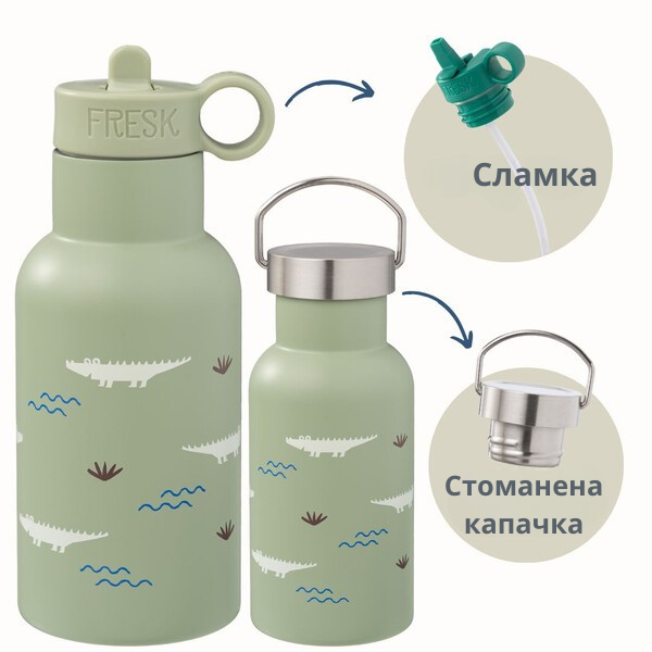- всеки термос върви с две различни капачки - една със сламка и една стандартна