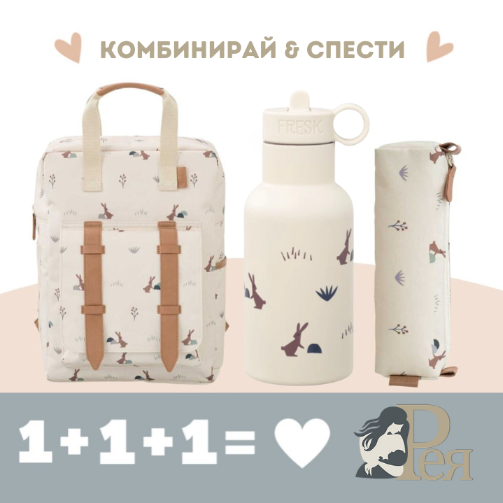 Отново на училище... този път с този красив комплект, който подготвихме специално за Вас от Fresk. Той включва: ученическа раница, 2в1 бутилка и термос и несесер в същия десен!