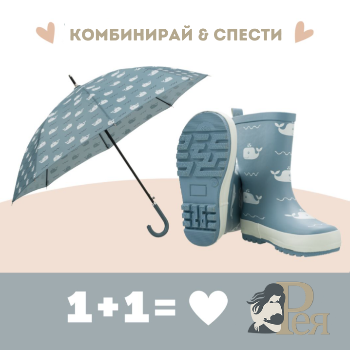 Дъждовните дни вече не са проблем в училище или в игрите навън... когато детето има този комплект гумени ботуши и чадър от Fresk!