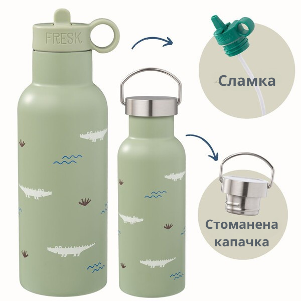 Fresk : 2 в 1 Бутилка и термос от неръждаема стомана с вградена сламка 500мл - Crocodile