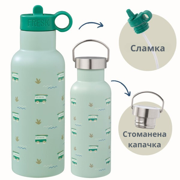 - всеки термос върви с две различни капачки - една със сламка и една стандартна.