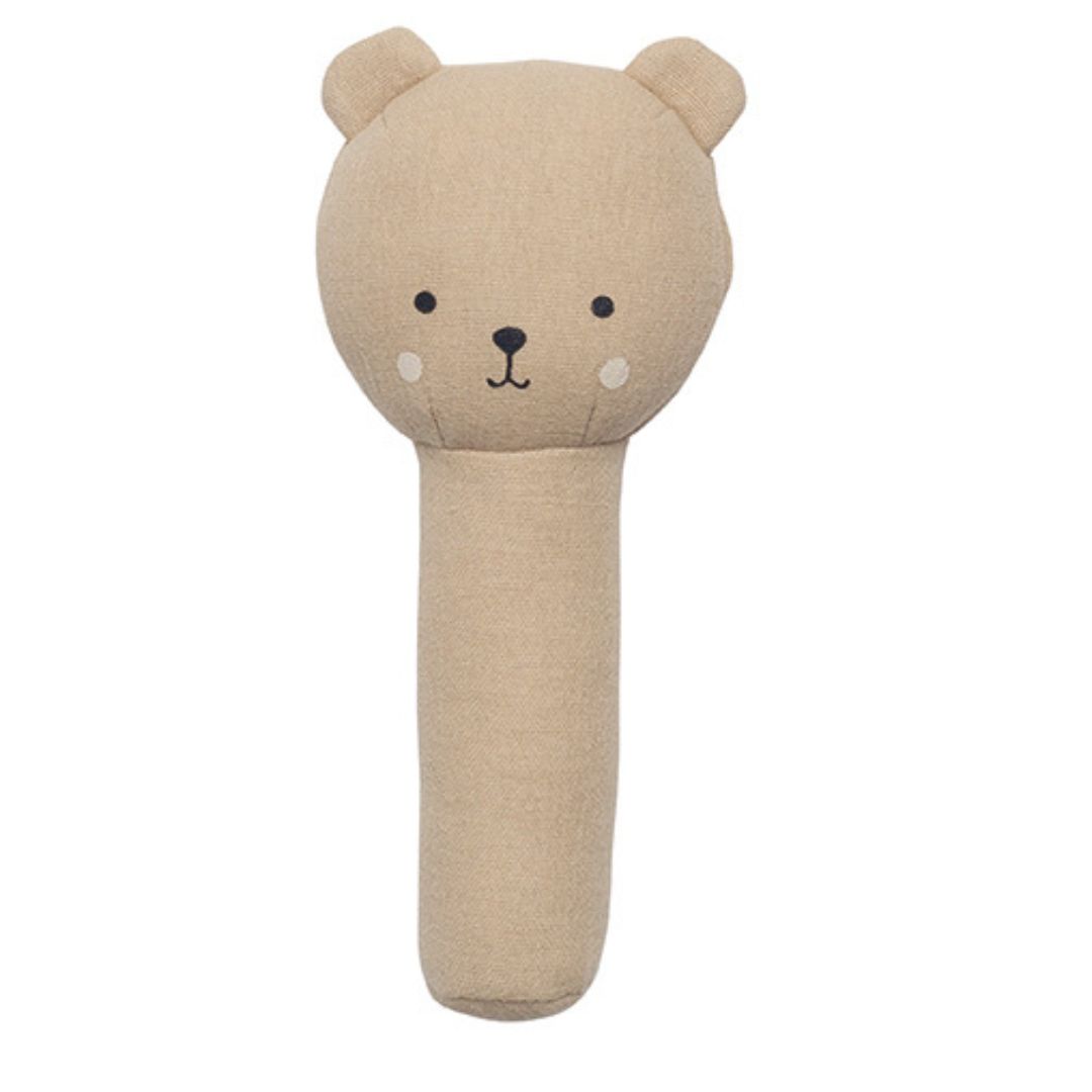 Бебето я държи лесно, а нежните звуци стимулират неговите сетива.