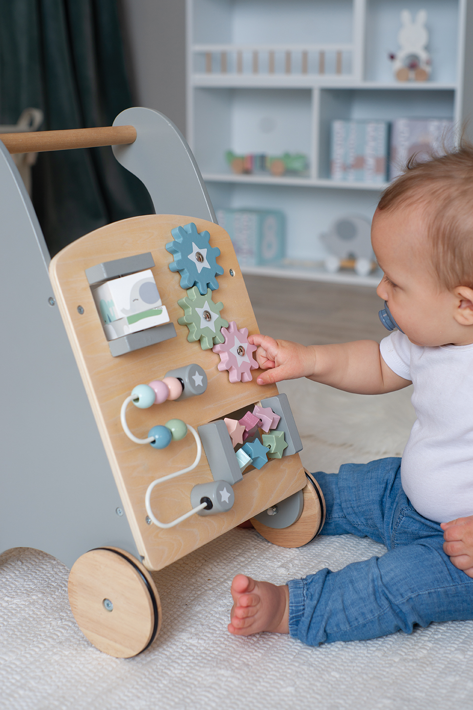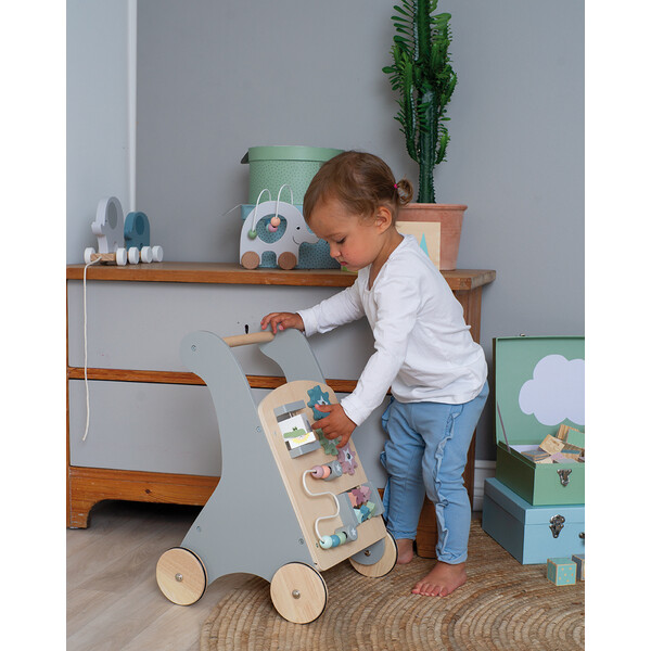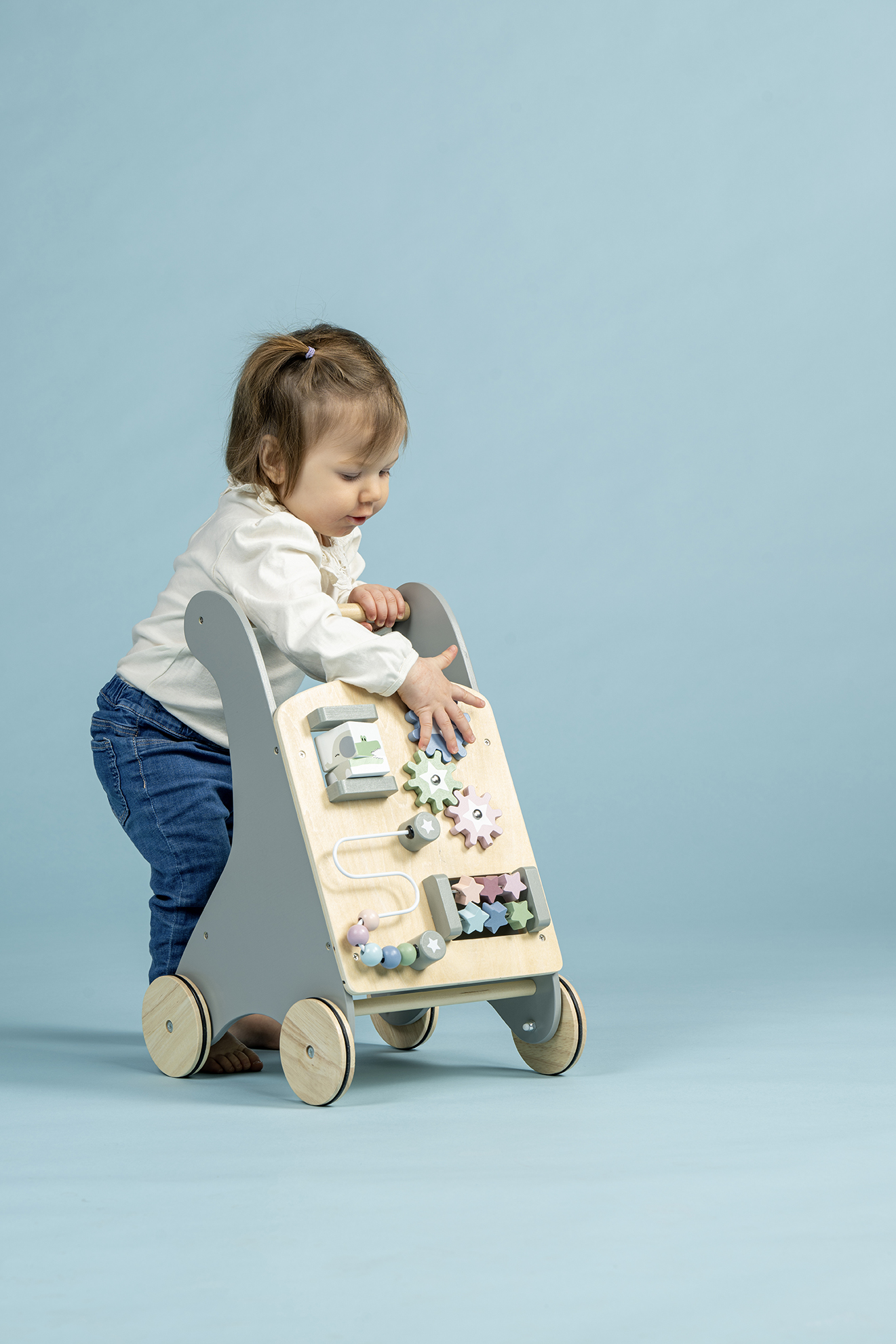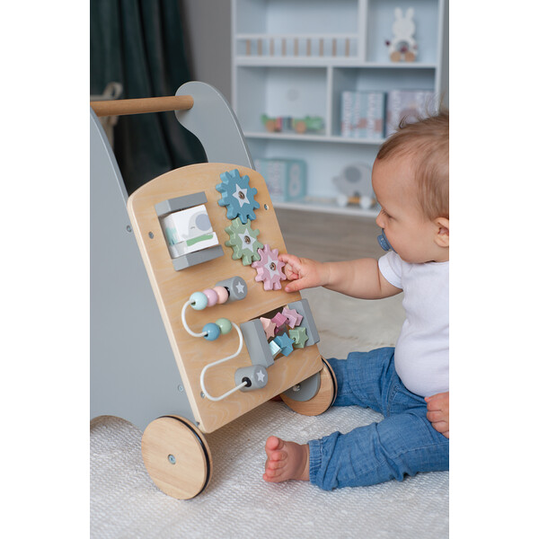 Отпред детето ще открие множество активности, които ще го насърчат да играе и да открива нови форми и движения!