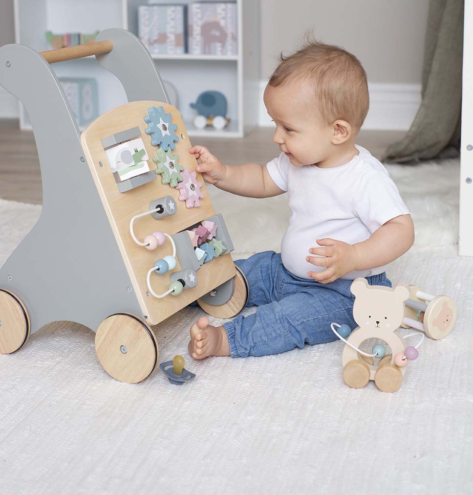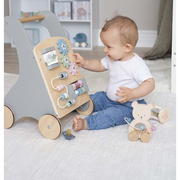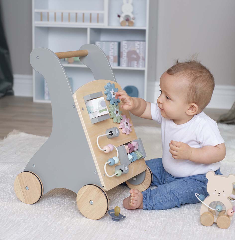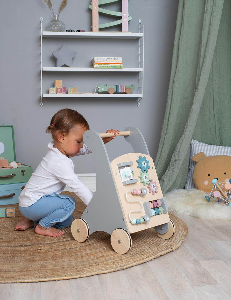 Отпред детето ще открие множество активности, които ще го насърчат да играе и да открива нови форми и движения!