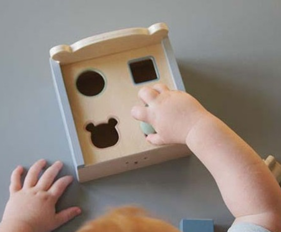 Една от най-добрите образователни играчки е тази дървена кутия с различни форми.