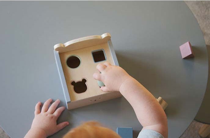 Една от най-добрите образователни играчки – дървена кутия с различни форми!