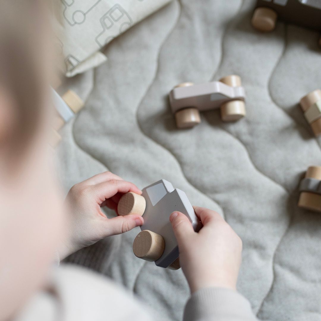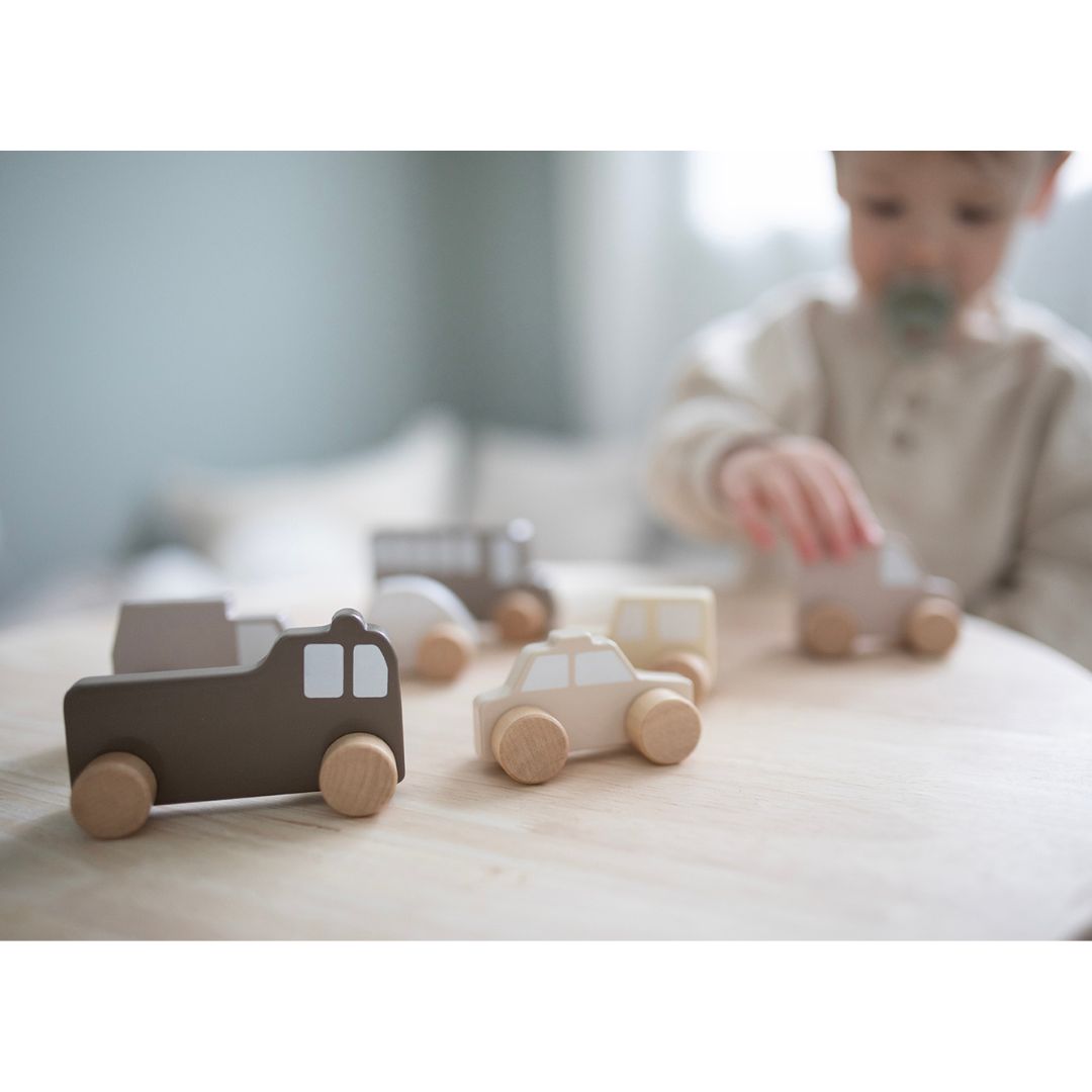 Дървените колички са с идеален размер за малките детски ръчички, в пастелни цветове. С големи, заоблени колела, които се търкалят лесно, те обещават часове забавление и активна игра.